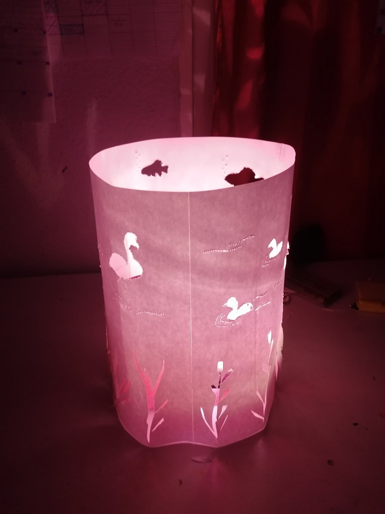 Mi proyecto consiste en una lámpara que a la vez es un altavoz , la lámpara tiene dibujos de algunas aves , plantas y peces que suelen estar en la laguna de la mata